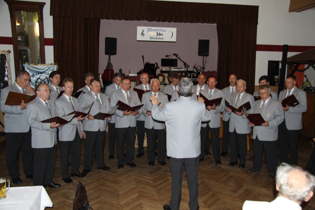 Es ist schon eine besondere Feier wert, wenn ein Verein auf eine 160 jährige Tradition zurück blicken kann. So konnte der Vorsitzende Rainer Jannicke auch über eine sehr wechselreiche, aber auch sehr interessante Vereinsgeschichte berichteten. Zu den Gratulanten gehörten nicht nur die benachbarten Gesangsvereine sondern auch der Landrat, die Bürgermeister und der Chorverband Giebichenstein. Der Männerchor Ermlitz ist schon viele Jahre mit den "Schladebachern" durch gemeinsame Chorleiter Ronald Drescher und Erik Schober sowie vielen gemeinsamen Auftritten befreundet. Darum ist es auch Ehrensache dem Schladebacher Männerchor unter der Leitung von Peter Czok für viele weitere Jahre viel Erfolg zu wünschen.
