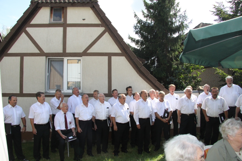 Nicht jeder Sänger schafft es 62 Jahre aktives Mitglied in einem Chor zu sein. Dazu noch so verdienstvoll zu sein wie Günter Engelmann, der viele Jahre selbst Vorsitzender war und in schweren Zeiten sehr viel für den Männerchor erreicht hatte. Da ist es eine Verpflichtung für alle Mitglieder ein ordentliches Ständchen für ihn, seine Verwandten und Freunde zu bringen.