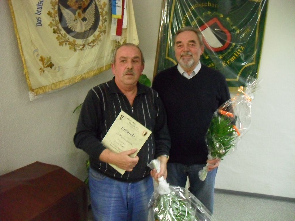 Jahreshauptversammlungen sind auch Anlass zu Ehrungen von Sängern für langjährige Mitgliedschaft. Für 30-jährige Mitgliedschaft im Männerchor Ermlitz wurde der Sangesfreund und erster Archivar Rainer Ködter geehrt.