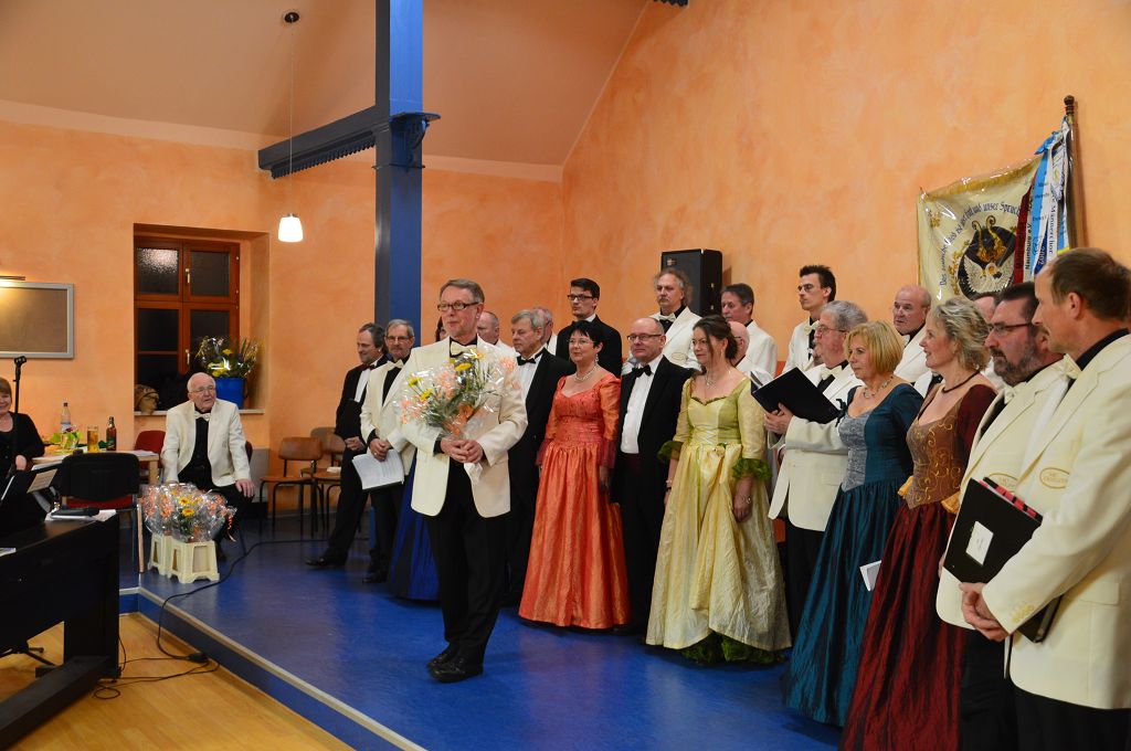 Nach der Festansprache nahm der Vereinsvorsitzende die Gratulationen der Gäste entgegen. Im Anschluss daran präsentierte sich der Chor mit einem anspruchsvollem kleinen Chorkonzert. Einige Titel wurden von unserem ehemaligen Chorleiter Herrn Ronald Drescher am Klavier begleitet.