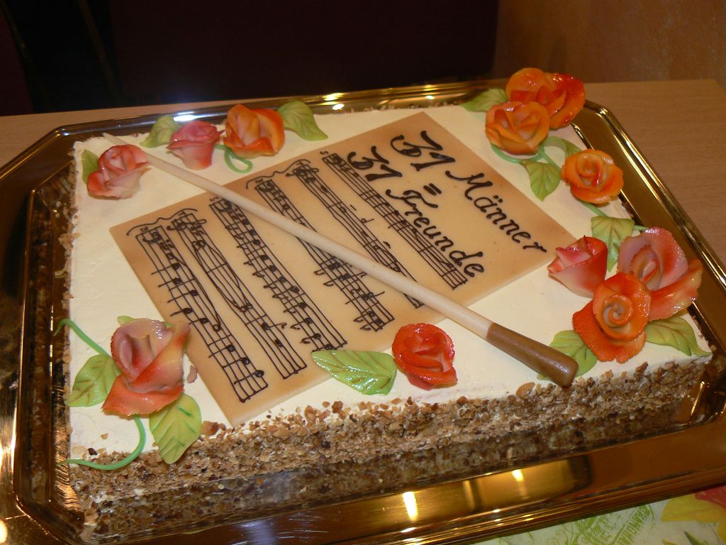 Von der Hotelfachschule Leipzig bekam der Ermlitzer Männerchor anlässlich seines 90-jährigem Jubiläums eine Geburtstagstorte mit der Aufschrift - 31 Männer = 31 Freunde -. Dafür sagt der Männerchor nochmals Dank. Besondere Anerkennung für dieses Meisterwerk zollt dem Konditormeister Herrn Höhne.