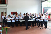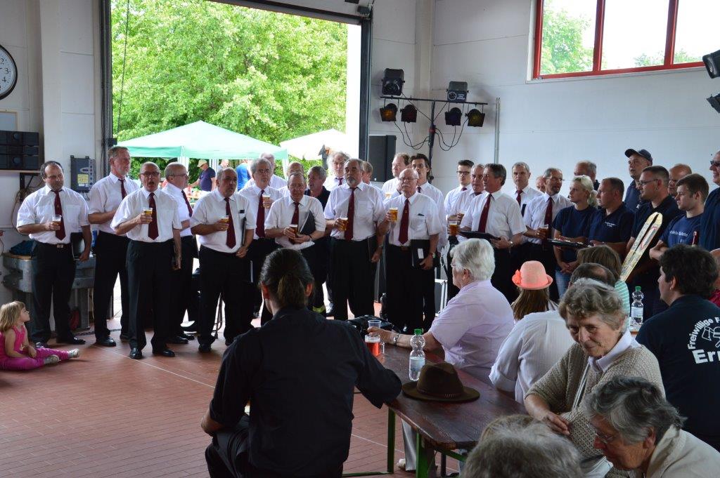 Die Feuerwehr bedankt sich bei den sangesfreudigen Männern mit einer Runde Bier. Für die Jubilare hat der Frauenchor dann noch das Lied gesungen - Was wären die Männer ohne uns - .