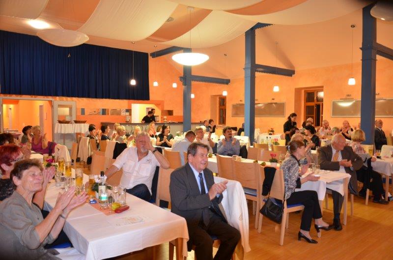 Zahlreiche Gäste mit Partner überbrachten dem Männerchor ihre Glückwünsche. Gratulanten waren Herr Andrej Haufe (Bürgermeister der Gemeinde Schkopau), Herr Patrick Wanzek (Ortsbürgermeister von Ermlitz und Landtagsabgeordneter), Herr Gunter Sachse (Gemeinderatsvorsitzender von Schkopau), Vertreter von ortsansässigen Vereinen und befreundeten Chören.