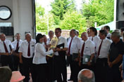 Die Feuerwehr bedankt sich bei den sangesfreudigen Männern mit einer Runde Bier. Für die Jubilare hat der Frauenchor dann noch das Lied gesungen - Was wären die Männer ohne uns - .